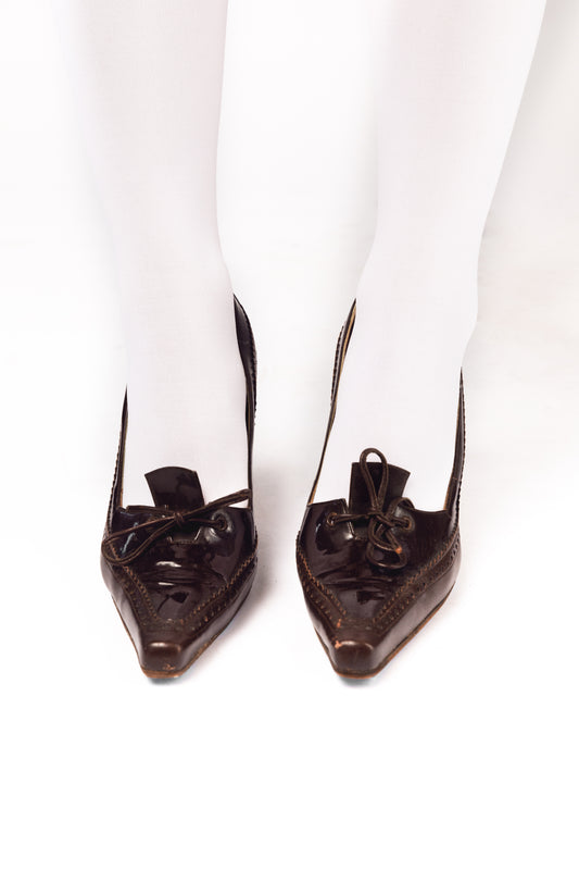 Manolo Blahnik brown leather lace up heels